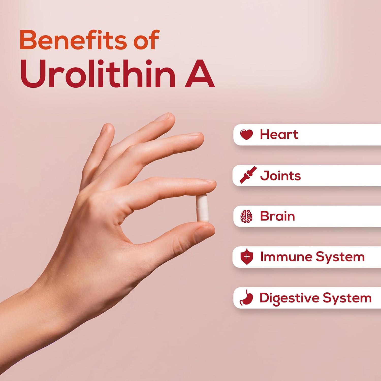 Urolithin A is not directly found in foods but is produced by the body when it digests ellagitannins from pomegranates, strawberries, walnuts, and raspberries. The efficiency of this conversion depends on your unique gut bacteria.